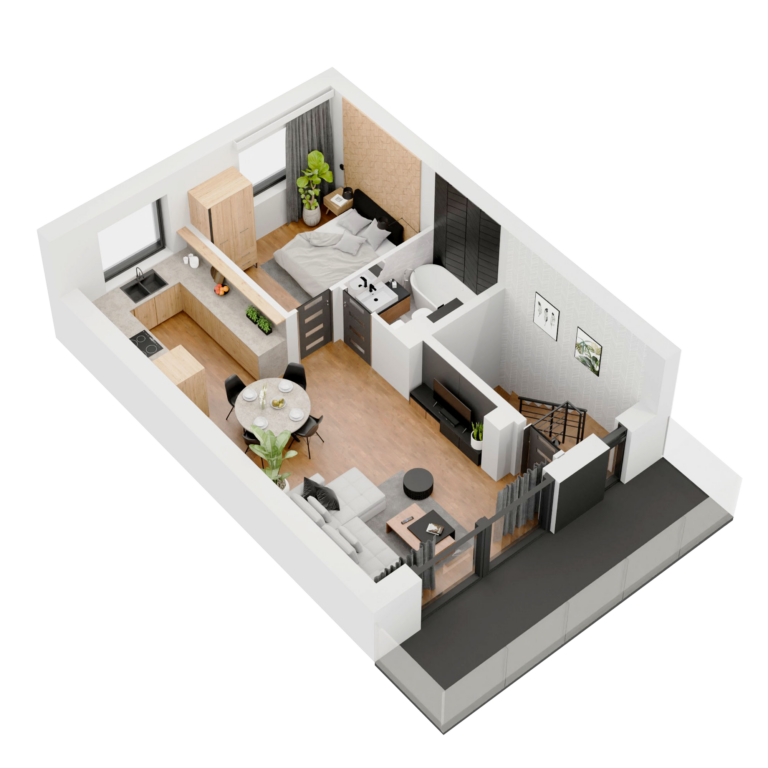 Każde mieszkanie zostało zaprojektowany z myślą o tym, by zapewnić Ci prywatną przestrzeń na świeżym powietrzu. Na parterze czekają na Ciebie ogródki z tarasami w standardzie – idealne do relaksu, porannej kawy czy spotkań z bliskimi. Mieszkania na piętrze mają duże balkony, które pozwalają cieszyć się słońcem i otaczającą zielenią. Niezależnie od tego, którą opcję wybierzesz, zawsze masz dodatkową przestrzeń, by oddychać pełną piersią.