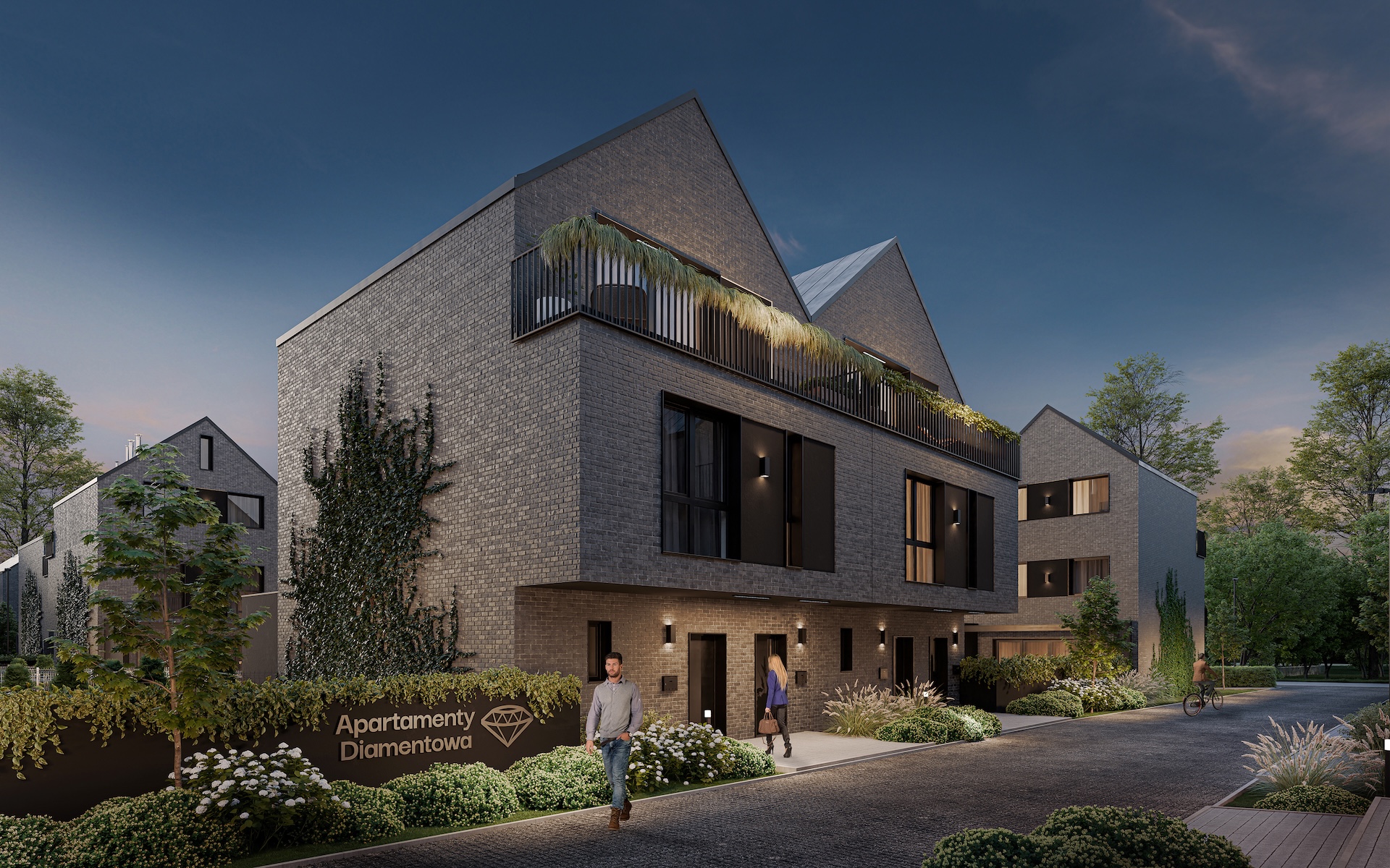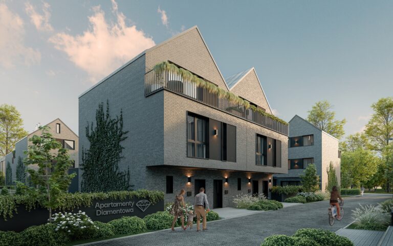 Apartamenty Diamentowa to inwestycja zaprojektowana z myślą o komforcie i estetyce. Wyróżnia ją kameralna zabudowa, elegancka architektura, a także starannie zagospodarowana przestrzeń wspólna. Szerokie alejki, mnóstwo zieleni oraz przemyślany układ budynków tworzą przestrzeń, w której żyje się po prostu wygodnie. To osiedle wyznacza nowy standard mieszkania w Siemianowicach Śląskich – nowoczesne budynki, funkcjonalne rozwiązania i świetna lokalizacja, która daje Ci wszystko, czego potrzebujesz na co dzień.